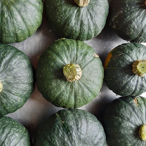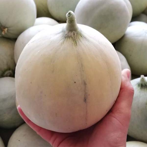 zucca tonda, appiattita, con buccia verde scuro e dalla polpa di colore giallo intenso. Asciutta, compatta, zuccherina. Periodo di raccolta giugno-settembre.